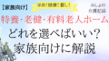 特養・老健・有料老人ホームの違いを家族向けにやさしく解説