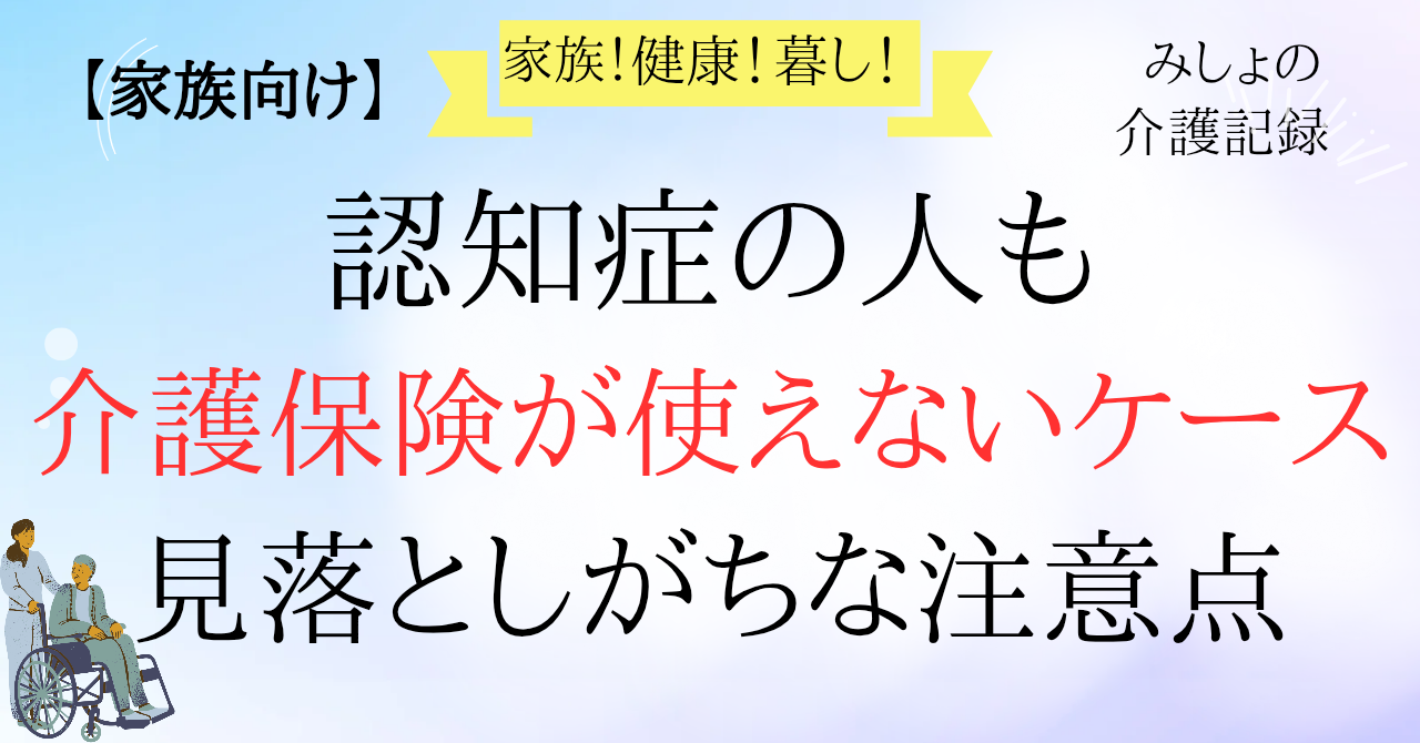 - 認知症だからといって、必ず介護保険が使えるとは限らない